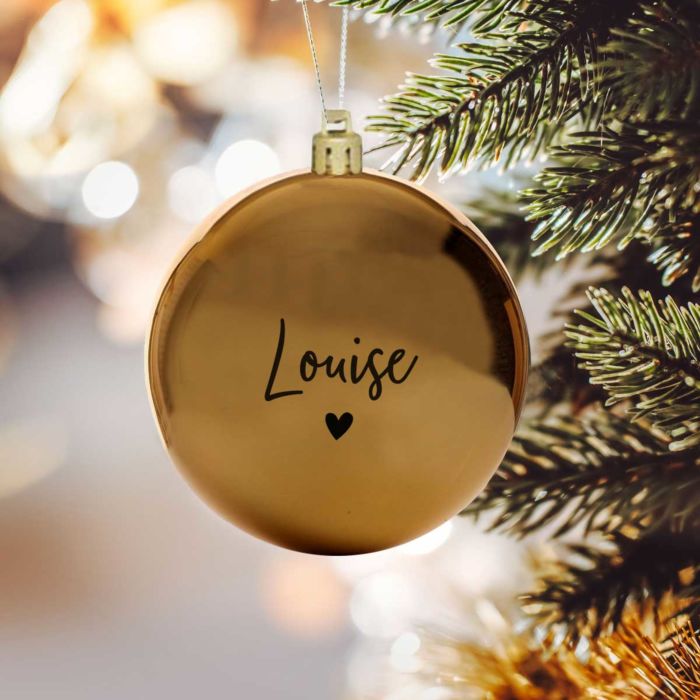 Cette année, et comme chaque année, chers lutins et fées de Noël, votre sapin sera encore plus beau et original que l’année passée. Tout simplement parce que nous avons chaque année de nouvelles idées de déco à vous proposer, toutes plus belles et plus originales les unes que les autres. Et quand nous disons « originales », nous pensons par exemple à notre boule de Noël personnalisée avec un cœur, que vous pouvez personnaliser avec votre propre texte. Le tout avec une ficelle pour le suspendre (très high-tech, donc…) et aussi dans la couleur de votre choix.